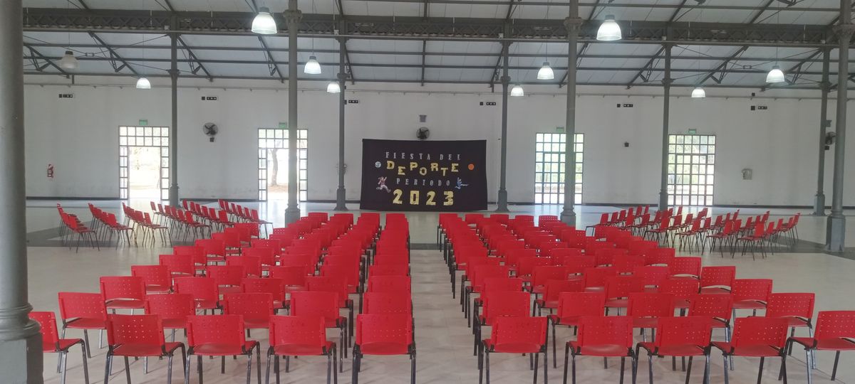 El salón principal del Centro de Convenciones de Añatuya está listo para la Fiesta del Deporte 2023