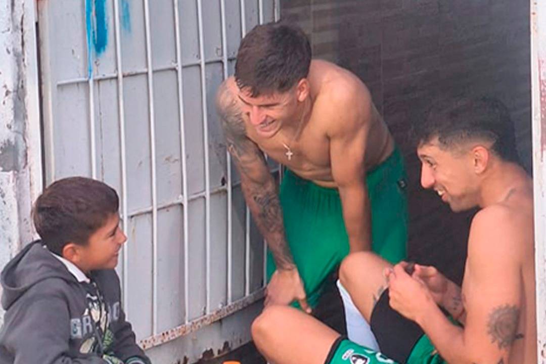 Una amena charla: la foto viral de un changuito santiagueño con jugadores de Ferro en la cancha de Güemes