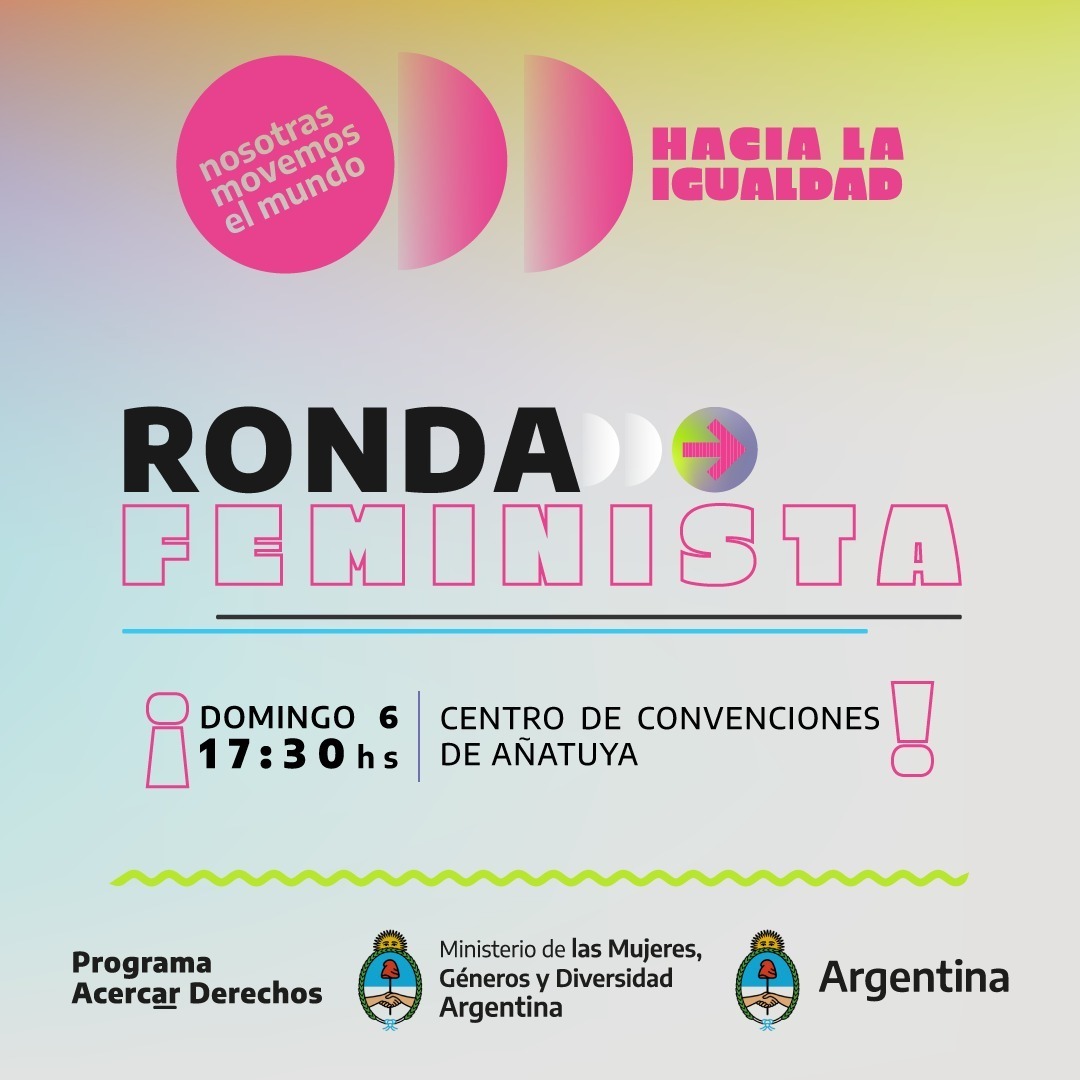 En el Centro de Convenciones Añatuya, este domingo 06 de marzo, desde las 17:30hs, bajo el lema “Nosotras movemos el mundo, hacia la igualdad”, todas las interesadas podrán participar de la Ronda Feminista con previa inscripción, la cual es abierta según adelantaron desde la organización del acontecimiento en la ciudad de Añatuya.