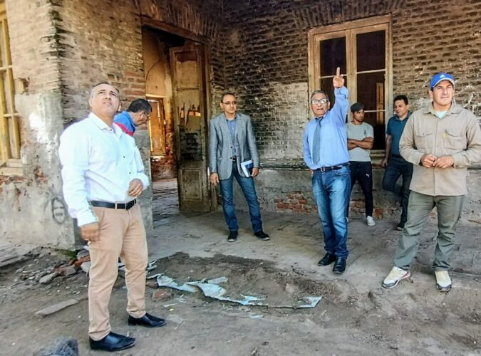El intendente de la ciudad de Loreto, Prof. Ramón González y autoridades, se hicieron presentes en el edificio del ex Ferrocarril donde pudieron observar sus condiciones actuales.