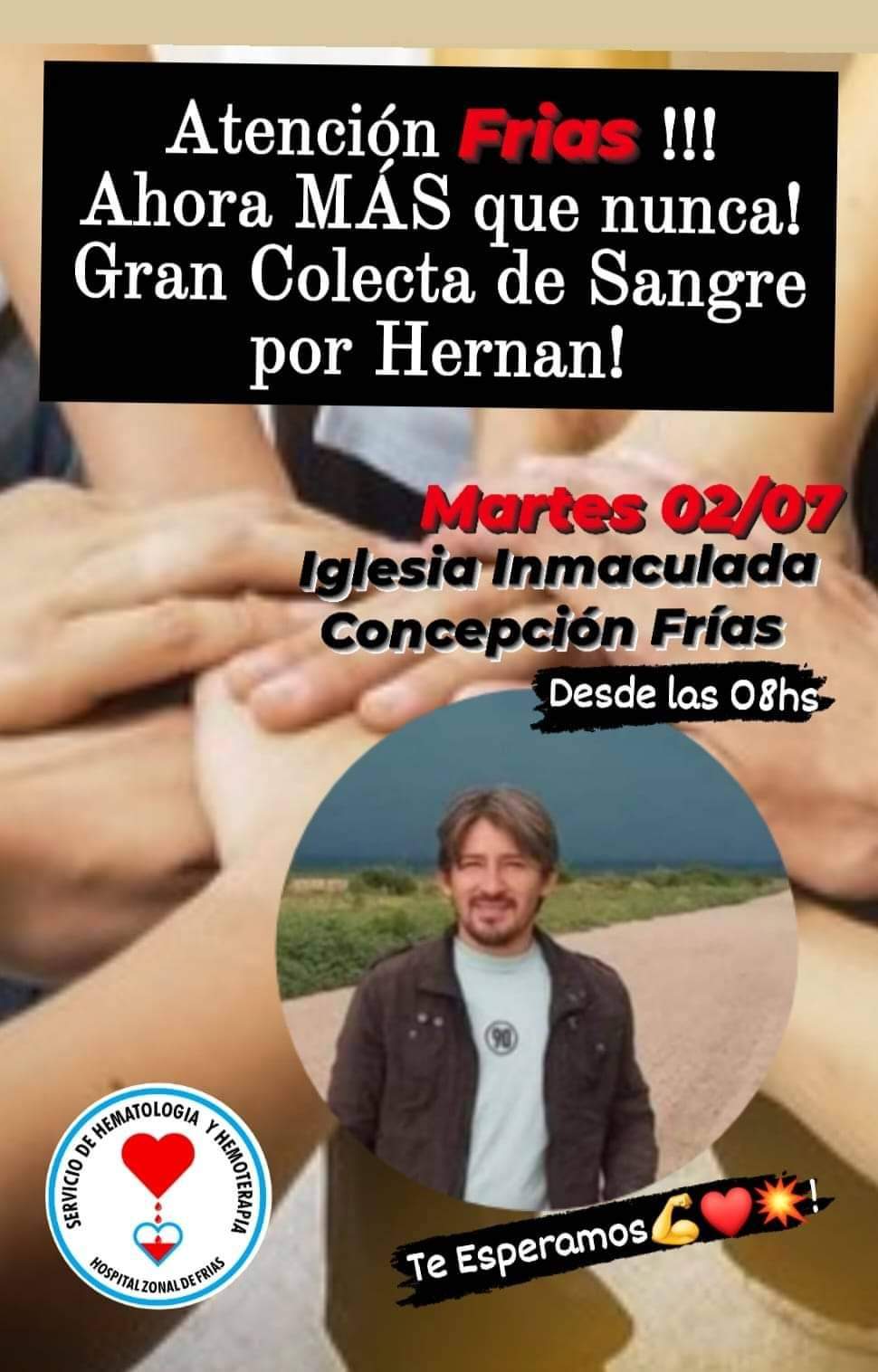 Invitamos a todos a unirse a esta campaña de solidaridad y donar sangre. Tu donación puede ser la diferencia entre la vida y la muerte para Hernan Cejas.