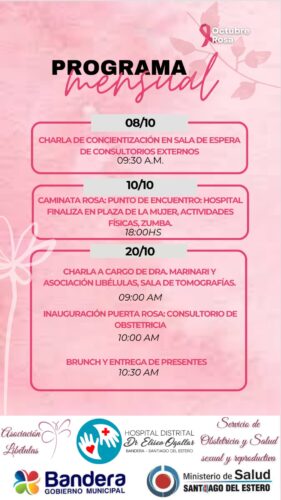 El Hospital Dr. Eliseo Ogallar de Bandera se ha unido a la conmemoración mundial del Octubre Rosa, el mes dedicado a la concientización y lucha contra el cáncer de mamas. Desde el Servicio de Obstetricia, se han organizado diversas actividades abiertas a toda la comunidad con el objetivo de promover la detección temprana, que, según especialistas, tiene una tasa de curación superior al 90% cuando se diagnostica a tiempo.