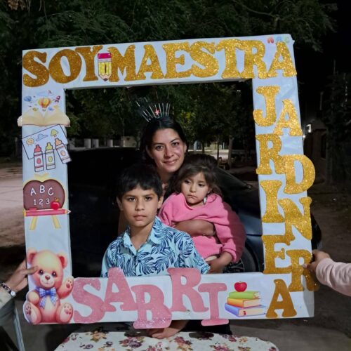 Sabrina Villarreal también encarna una historia de lucha, amor y superación. Desde muy pequeña soñó con ser docente y, a pesar de los obstáculos, nunca renunció a ese anhelo. Su carrera estuvo atravesada por la maternidad, compartiendo cada etapa de su formación con sus hijos, quienes crecieron acompañándola día a día y se convirtieron en su mayor motor y fortaleza. Su experiencia refleja el valor del sacrificio, la constancia y la convicción de que la educación es un camino posible incluso en contextos difíciles.