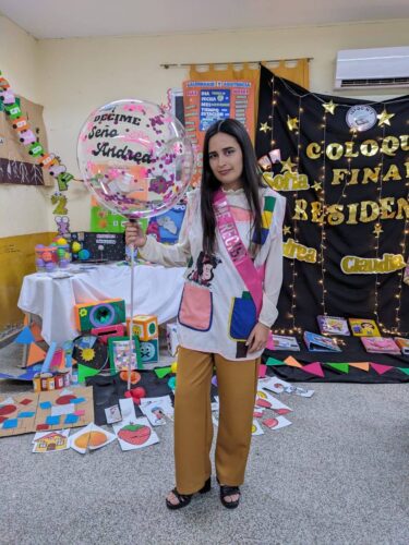 Andrea Reyes es oriunda de la localidad de El Cuadrado, donde cursó sus primeros estudios. Luego debió trasladarse a la ciudad de Los Juríes para continuar el nivel secundario, lejos de sus padres y de su lugar de origen. Más tarde, siguió el nivel superior en la ciudad de Añatuya, en el Instituto de Formación Docente Continua N° 1 “Monseñor Jorge Gottau”, donde durante cinco años sostuvo con esfuerzo y compromiso su camino formativo. Sus prácticas profesionales las realizó tanto en Añatuya como en Los Juríes, siendo recibida con calidez por las instituciones educativas locales. Andrea destaca el acompañamiento permanente de su familia y el apoyo del municipio, fundamentales para poder alcanzar su anhelo de convertirse en maestra.