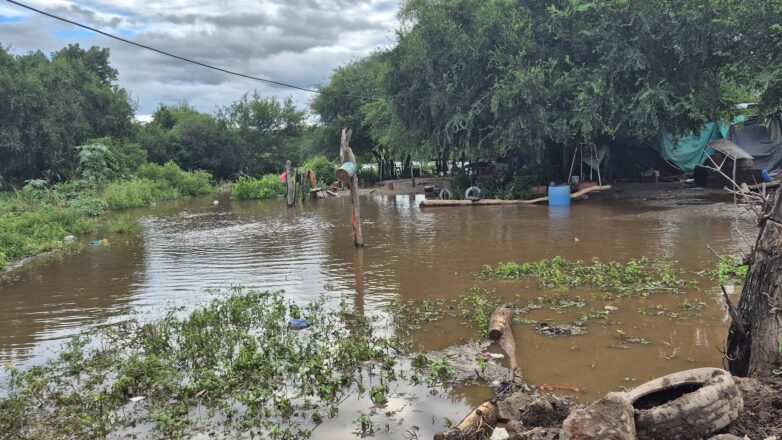 Durante la tarde de este martes, el agua comenzó a salir del cauce natural del río y avanzó hacia sectores cercanos a viviendas ubicadas en los barrios Sumampa Sur y Eliseo Fringes, donde algunos patios ya fueron alcanzados por el avance del agua.