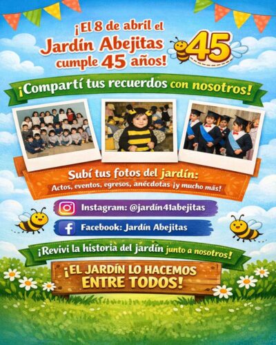 Una de las novedades es el lanzamiento del Instagram oficial (@jardin41abejitas), donde invitan a exalumnos, padres y docentes a subir fotos de sus épocas en el jardín, etiquetar a la institución y compartir anécdotas. El objetivo es recopilar ese material para realizar un video conmemorativo que una el pasado con el presente de la institución.