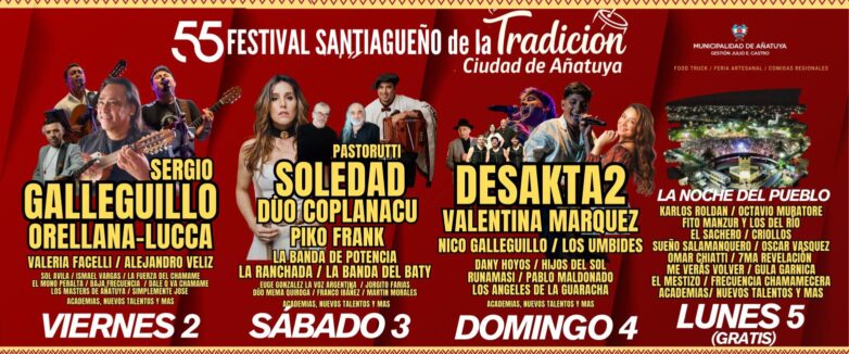 Asimismo, informó que el próximo 30 de diciembre se contará con la presencia de autoridades provinciales y nacionales, jornada que marcará el cierre de los espectáculos callejeros gratuitos, con presentaciones artísticas y la tradicional peregrinación de los santos patronos, siempre que las condiciones climáticas lo permitan. A partir del viernes siguiente, dará inicio la segunda etapa del festival, con artistas ya confirmados en la grilla principal.