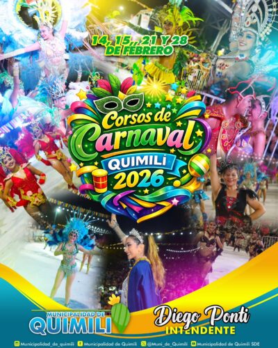 Uno de los carnavales más importantes del interior de la provincia ya comienza a palpitarse. La Municipalidad de Quimilí, junto al intendente Diego Ponti, confirmó oficialmente las fechas de la 49° edición de los Corsos de Carnaval Quimilí 2026, el evento popular más convocante del noreste santiagueño.