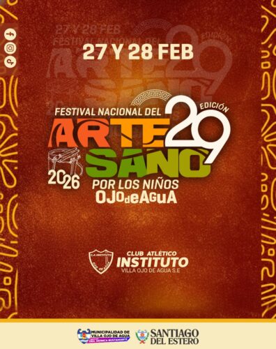 En el último fin de semana de febrero de 2026, se desarrollará la 29ª edición del Festival Nacional del Artesano “Por los Niños”, en el predio del Club Atlético Instituto Villa Ojo de Agua, que volverá a convertirse en el gran punto de encuentro de la música, la tradición, la artesanía y la solidaridad.