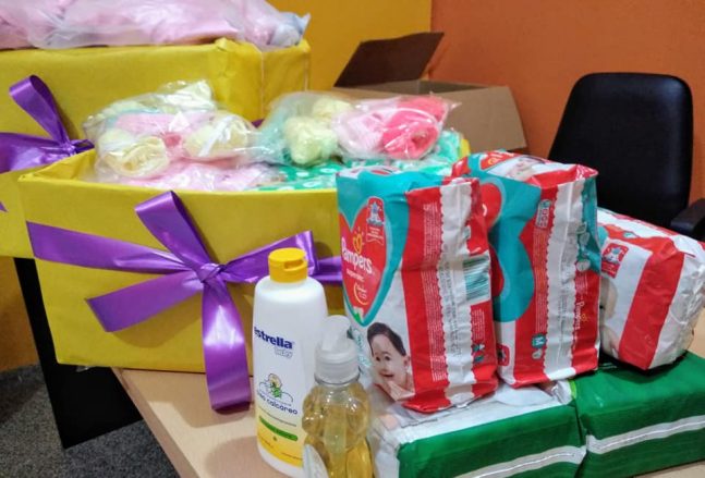 Entregaron mamaderas, chupetes, pañales, mantas, escarpines y ropa de bebé, entre otras donaciones.