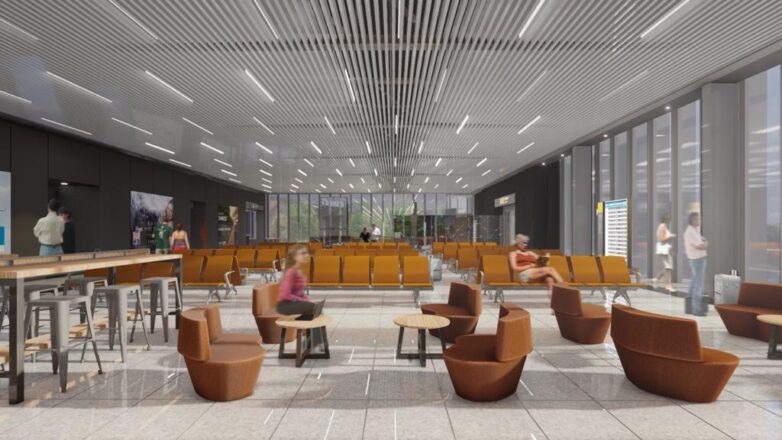 Mientras que en la planta alta se dispondrá una sala de pre embarque totalmente ampliada con nuevo equipamiento, confitería y sanitarios.