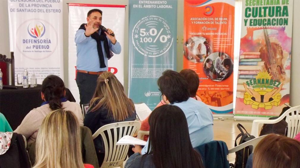 Este espacio de capacitación estuvo a cargo de la Defensoría del Pueblo de la Provincia en forma conjunta con la Asociación Civil «Recursos Humanos y Formación de Talentos» y la Secretaría de Cultura y Educación de la Municipalidad local. La Apertura estuvo a cargo de la Secretaria de Cultura y Educación Prof. Marcela Gerez junto a la Presidenta del HC Deliberante CPN Yanina Iturre, junto al disertante Lic. Gustavo Beltrán, integrante de la Asociación Civil de Recursos Humanos y Formación de Talento.