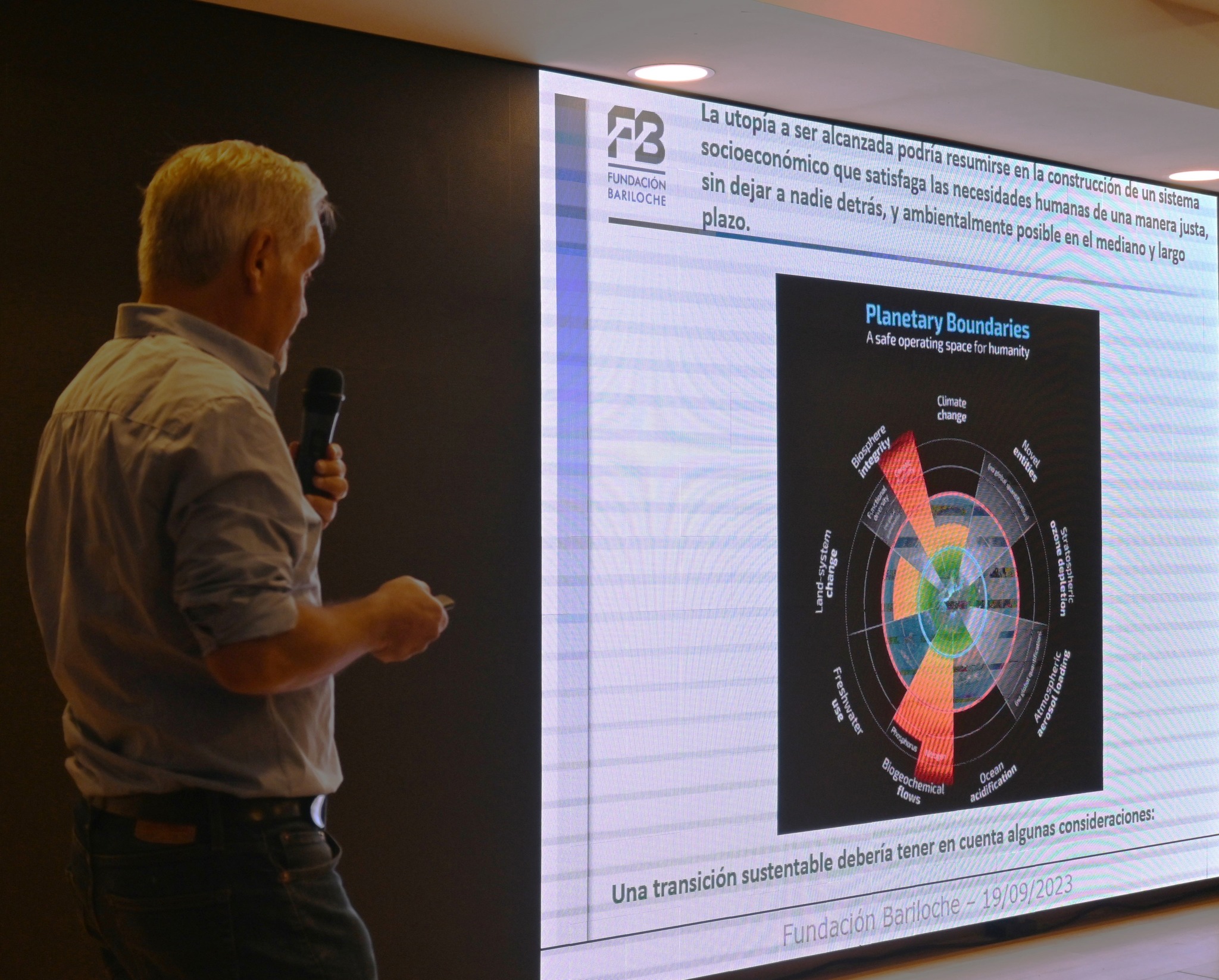 La Jornada comenzó con la exposición del Dr. Adrián Monjeau, Director del Instituto de Análisis de Sistemas Complejos de la Fundación Bariloche, quien presentó “Una mirada sobre los objetivos de desarrollo sustentable hacia el 2030 y 2050; acciones globales y nacionales, y acciones sobre el impacto del Cambio Climático”.