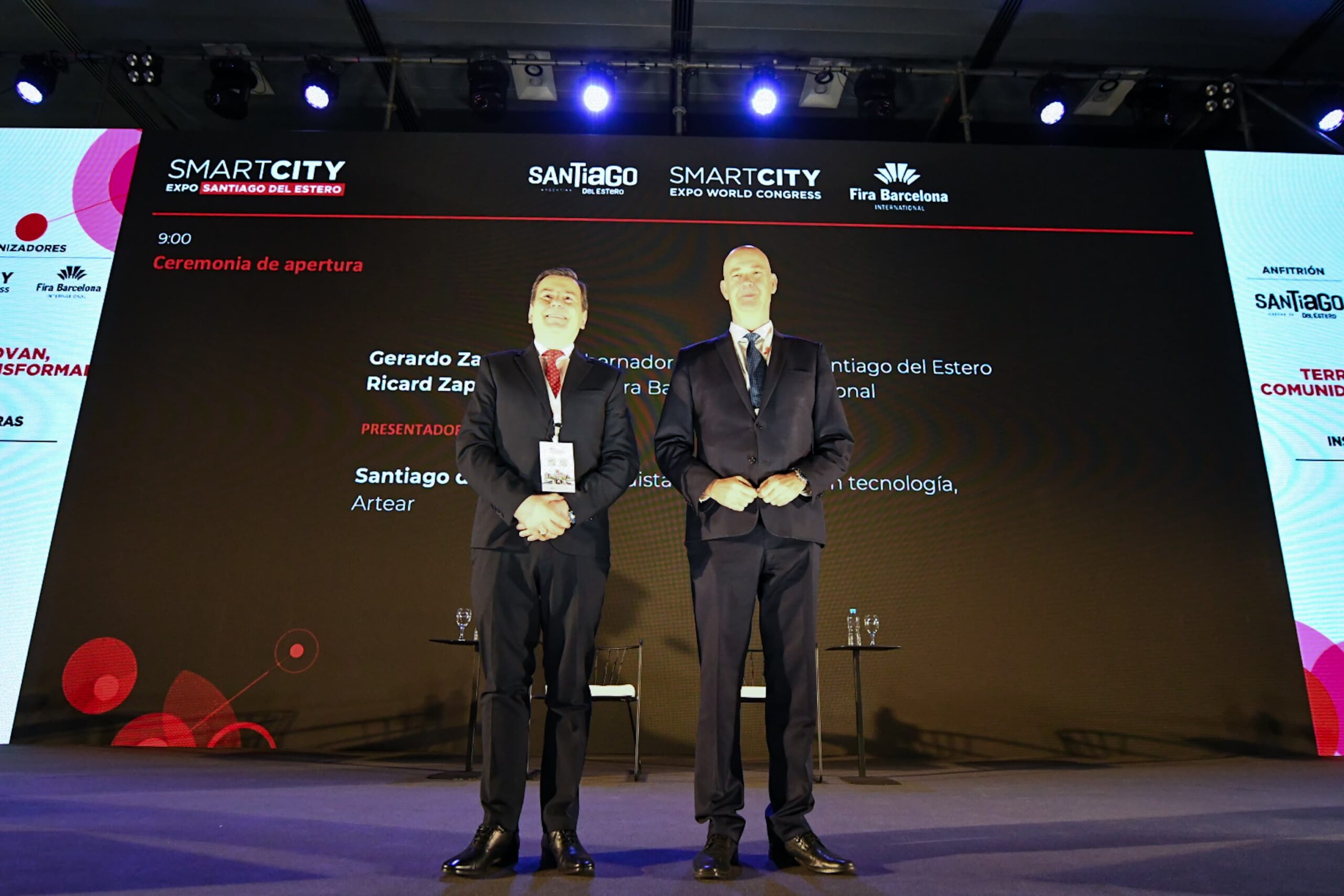 El gobernador Gerardo Zamora, junto al CEO de Fira Barcelona Internacional, Ricard Zapatero, encabezó la apertura del evento que se desarrolla este miércoles y jueves en el Fórum, bajo el lema «Territorios que innovan: ciudades que se transforman».