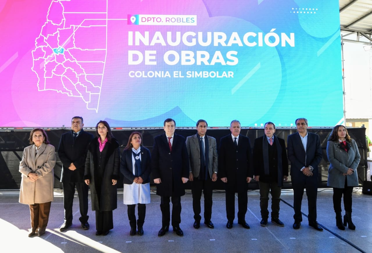 Estuvo acompañado por el vicegobernador Carlos Silva Neder; el jefe de Gabinete, Elías Suárez; los ministros de Obras Públicas, Aldo Hid; de Educación, Mariela Nassif; de Desarrollo Social, Ángel Niccolai, y de Salud, Natividad Nassif. También por la presidente Consejo General de Educación, María Elena Herrera, quienes fueron recibidos por el comisionado de Colonia el Simbolar, Ramón Iñíguez.