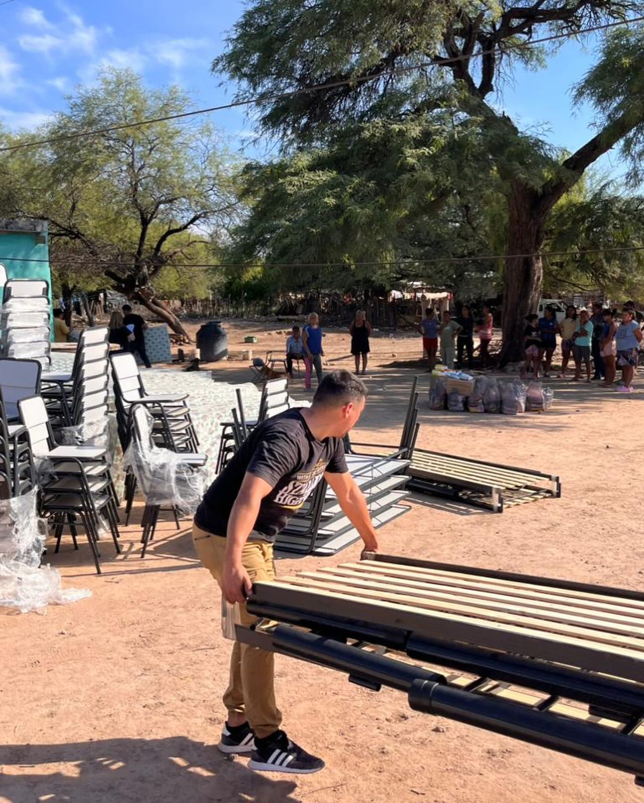 Durante el operativo se realizó la entrega de mesas, sillas, colchones, bolsones de mercadería, leche y chapas, elementos fundamentales para mejorar las condiciones de vida de los hogares beneficiados. En total, más de 15 familias recibieron esta ayuda directa.