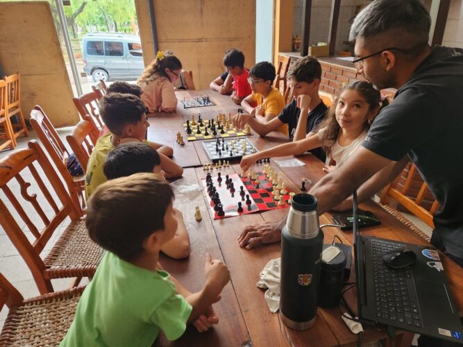 En paralelo, el taller de ajedrez “Jaque y Mate”, a cargo de Nelson González y Manolo Leguizamón, se consolidó como un espacio de formación que promueve la concentración, la estrategia y el pensamiento lógico. La propuesta, que ya cuenta con una importante concurrencia, se complementa con el apoyo escolar gratuito para nivel primario y secundario, con clases de Inglés, Lengua y Literatura, reforzando el acompañamiento educativo durante el receso estival.