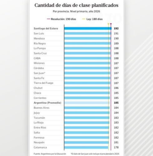 Santiago del Estero se ubica en lo más alto del ranking nacional de días de clases previstos para el ciclo lectivo 2026, de acuerdo a un reciente informe elaborado por la organización civil Argentinos por la Educación.
