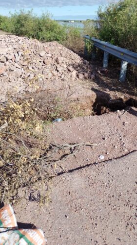 Según se pudo constatar en las últimas horas, una de estas estructuras mostró fisuras aún más pronunciadas cuando un camión de gran porte atravesó el sector, pese a que la circulación de vehículos pesados se encuentra expresamente restringida en la zona, especialmente a la altura del paraje San Clemente.