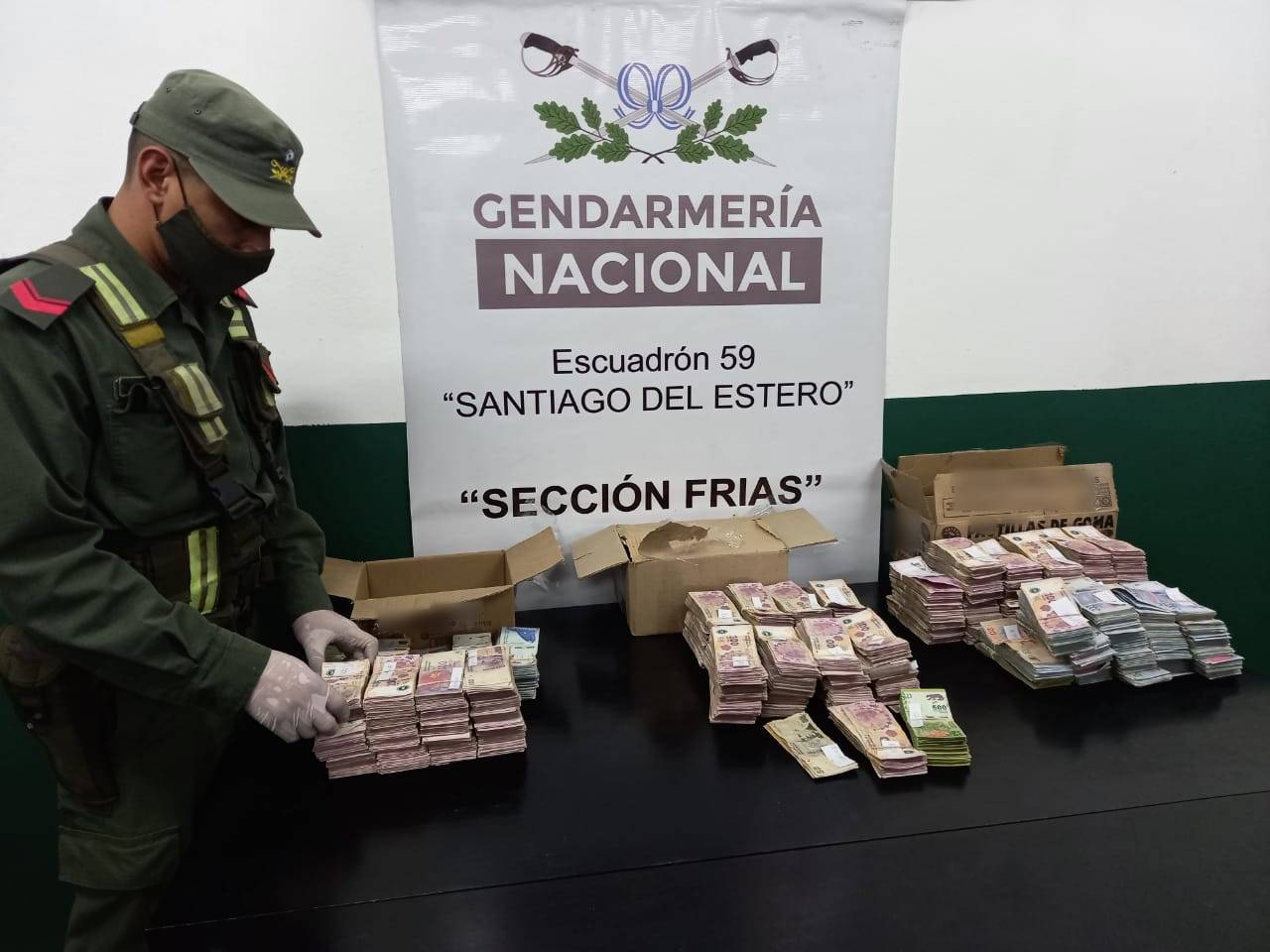 Cuando los gendarmes procedieron a registrar la cabina del vehículo, divisaron tres cajas de cartón que se encontraban sobre el colchón. Al abrir las mismas, detectaron fajos de billetes en moneda nacional, sin la documentación que avale su legal tenencia y traslado.