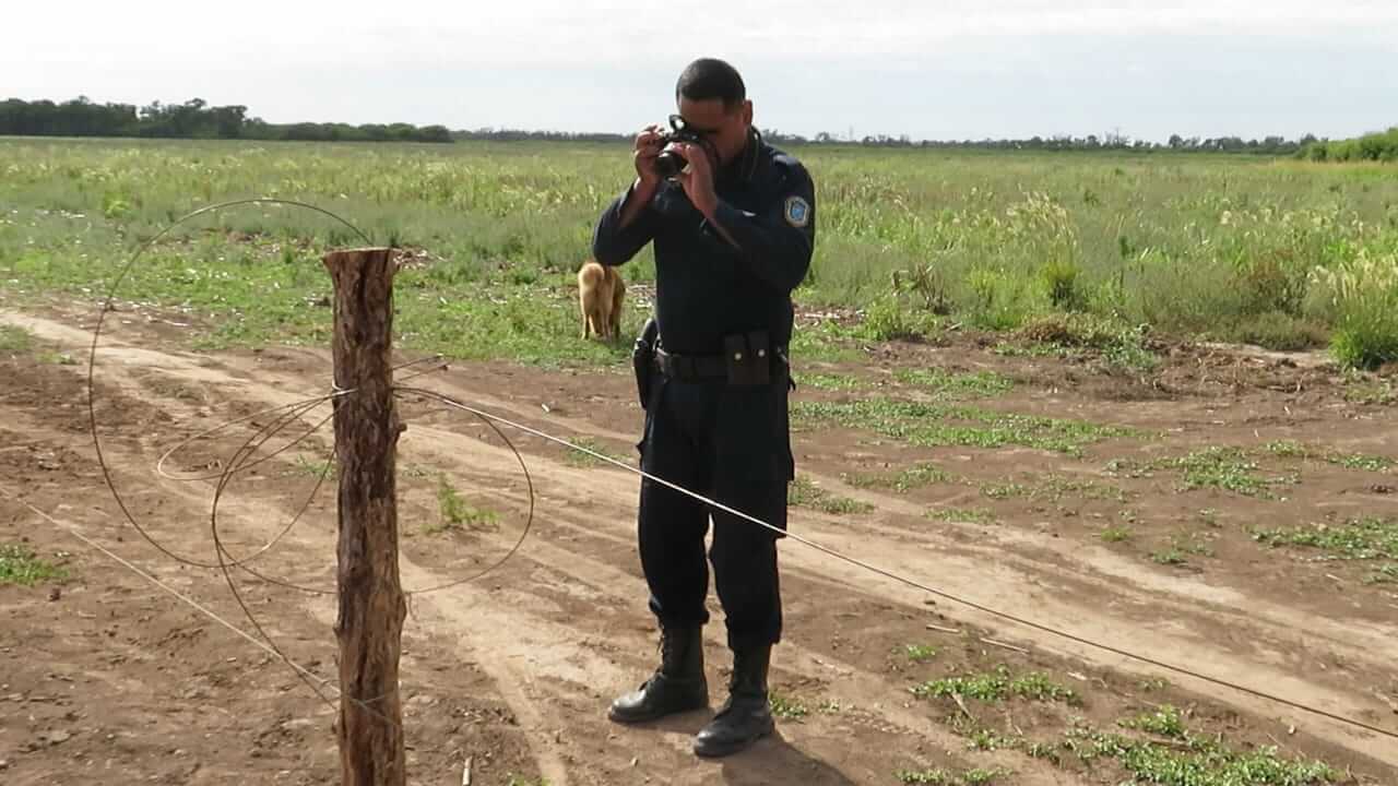 Durante la mañana del 15 de diciembre se realiza la denuncia pertinente por los daños efectuados en la Comisaria N°48 de Los Juríes. Es en ese momento que a José Luis Toloza (legítimo poseedor de los campos en conflicto) se le notifica de una denuncia efectuada por Giordanengo y Escalada, con la consiguiente medida de prohibición de acercamiento hacia sus personas, siendo que fueron estos personajes los que se acercaron a la posesión de Toloza y efectuaron daños, sin vivir ni residir ninguno de los mismos en el territorio en cuestión. Esa misma fecha, en horas cercanas al mediodía, personal policial realiza la constatación de los daños efectuados. En horas de la tarde, la comunidad se organiza para reparar tres hebras del alambre cortado por el empresario cordobés y sus violentos acompañantes.