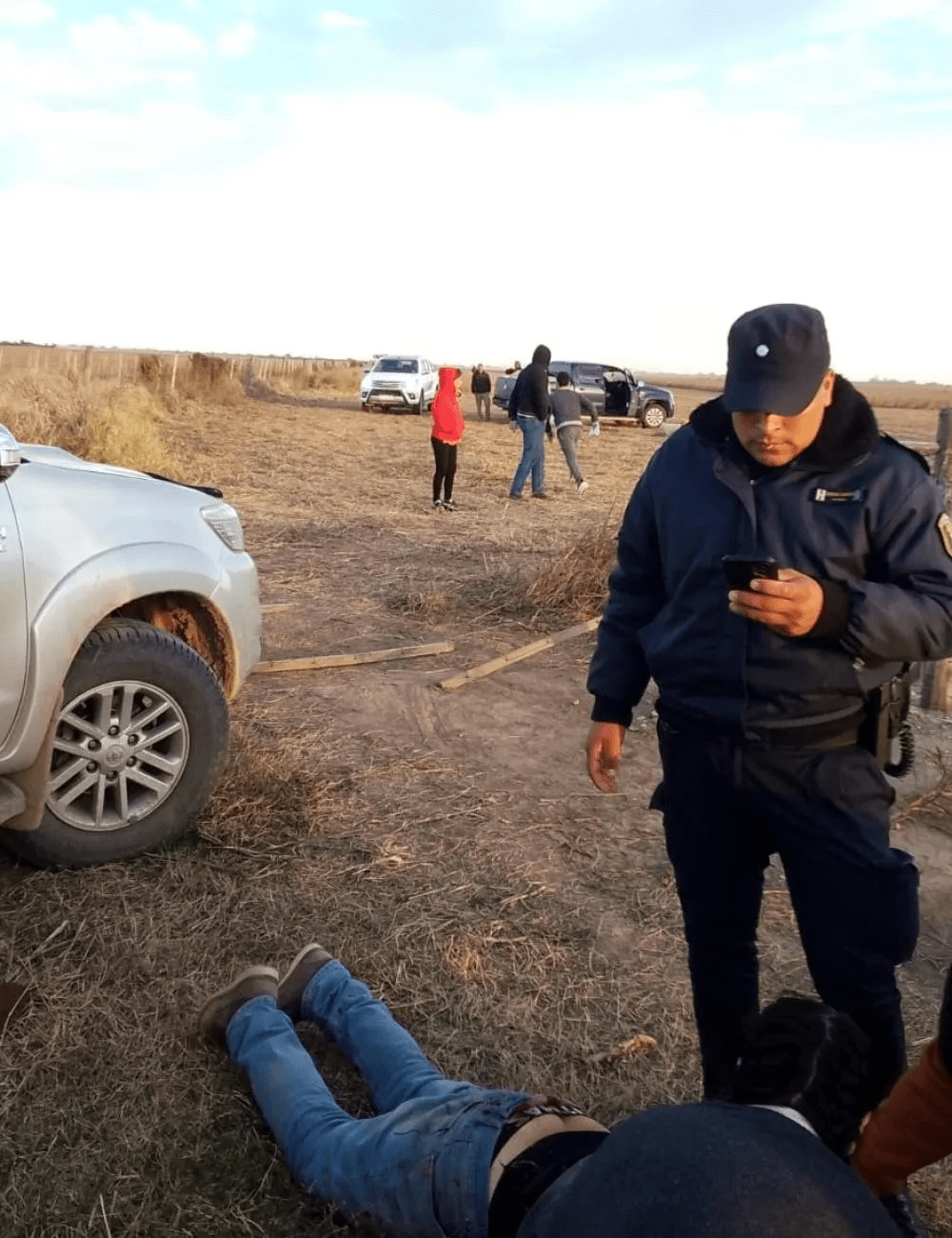 Al llegar al lugar, los efectivos policiales se encontraron con una escena caótica: por un lado, los tres jóvenes encapuchados, armados con machetes y cuchillos; por el otro, los miembros de la familia Bravo, atrincherados en su vivienda. Tras un forcejeo, los policías lograron reducir a los agresores y secuestrar las armas utilizadas.
