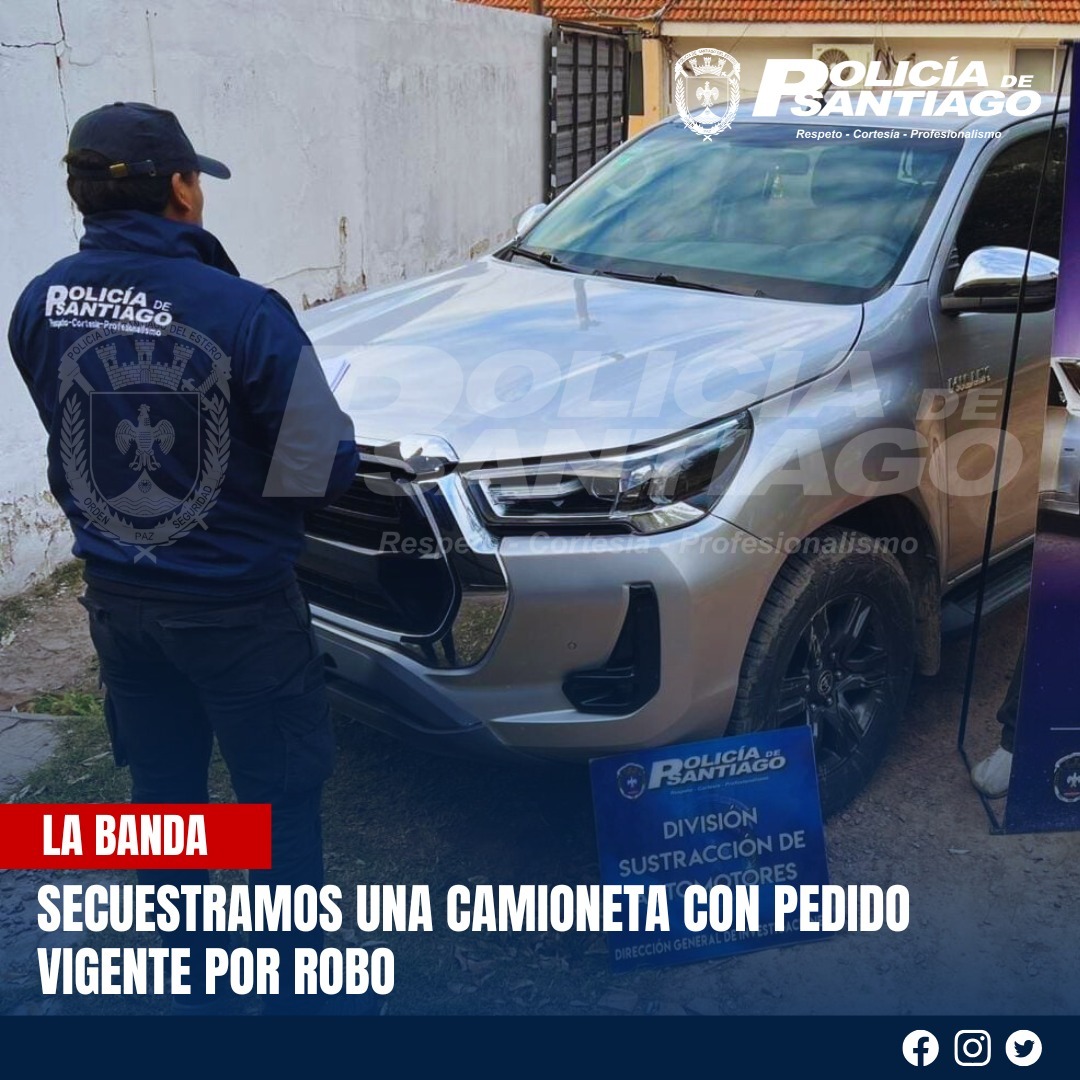 En un procedimiento que destaca la eficacia de las tareas investigativas, personal de la División Sustracción de Automotores logró el secuestro de una camioneta Toyota Hilux que registraba un pedido de captura vigente por robo. El operativo se llevó a cabo en la ciudad de La Banda, tras detectar irregularidades en el dominio del vehículo.