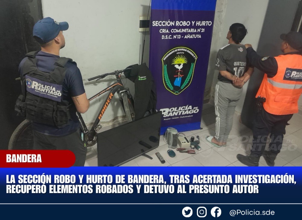 En la ciudad de Bandera, personal de la Brigada de Investigaciones, junto a efectivos de la Comisaría Comunitaria N°21, concretó un procedimiento que permitió esclarecer una serie de ilícitos cometidos durante el mes de agosto y principios de septiembre.
