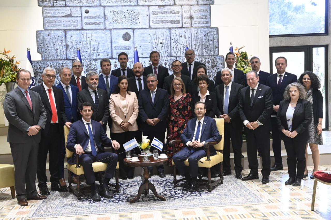 El presidente de Israel, Isaac Herzog, recibió al ministro del Interior de la Argentina, Wado de Pedro, quien encabezó una importante misión junto al vicejefe de Gabinete y sus pares de Agricultura, Ganadería y Pesca y de Ciencia, Tecnología e Innovación, además de gobernadoras, gobernadores y representantes de diez provincias argentinas, entre ellos el senador nacional José Emilio Neder, en representación de Santiago del Estero y del gobernador Gerardo Zamora.