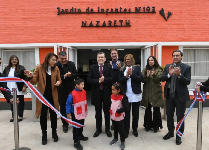 La comitiva fue acompañada por el intendente Diego Ponti y la directora del establecimiento educativo, Claudia Fabiana Pereyra, quienes acompañaron en el recorrido por las instalaciones refaccionadas por completo, donde además se hicieron ampliaciones conforme a las necesidades de los cien alumnos y del cuerpo docente de la institución del Nivel Inicial.