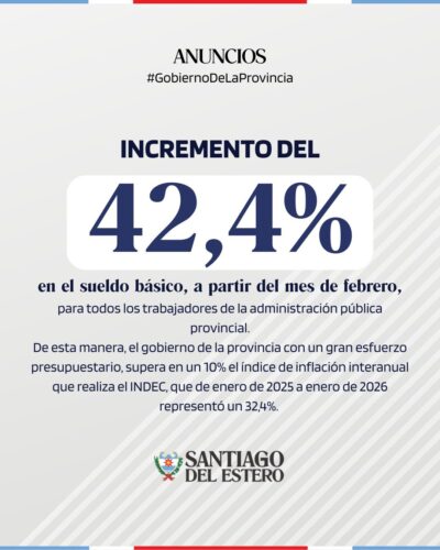 El Gobierno de la Provincia de Santiago del Estero comunicó un nuevo acuerdo salarial destinado a los trabajadores de la Administración Pública Provincial, alcanzado luego de reuniones con la Mesa de Diálogo y Trabajo, tanto con el sector docente como con los gremios que representan al resto de los empleados estatales.
