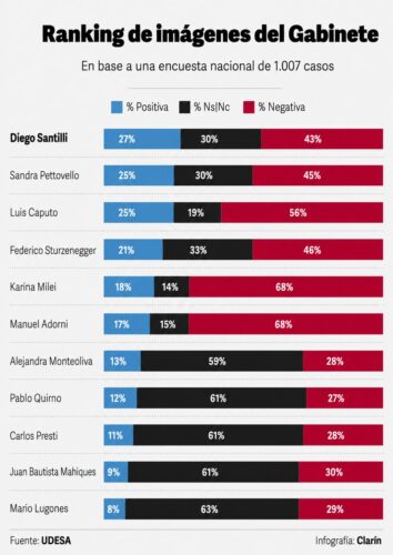 Encuesta nacional: el gabinete de Javier Milei tiene imagen negativa generalizada y la oposición muestra mejores posicionamientos individuales